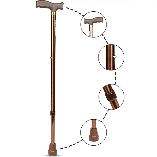 Entros Premium Height Adjustable Aluminum L-Shaped Walking Stick (Brown)