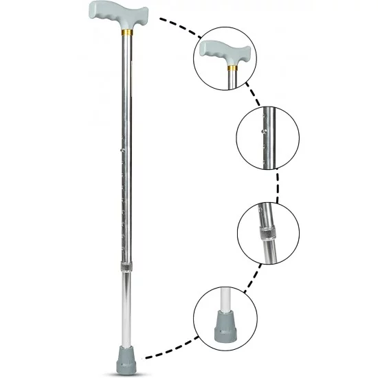 Entros Premium Height Adjustable Aluminum L-Shaped Walking Stick (Silver)